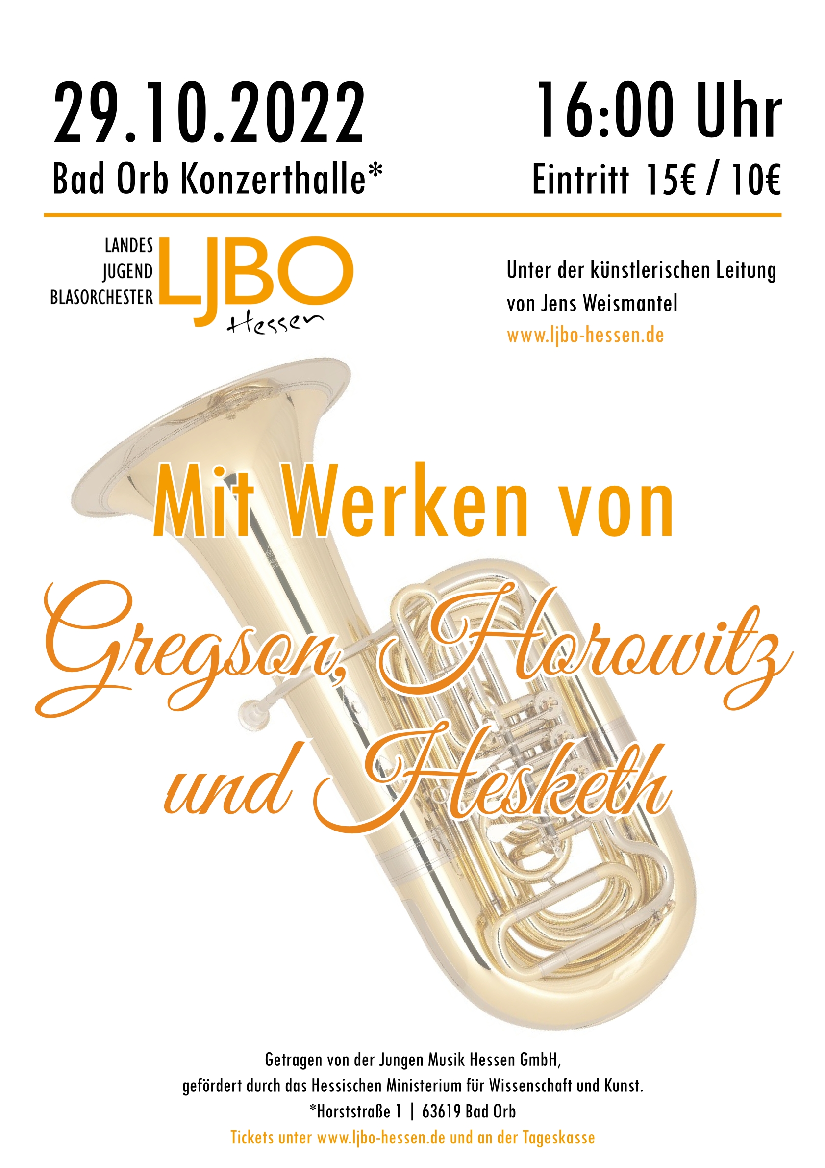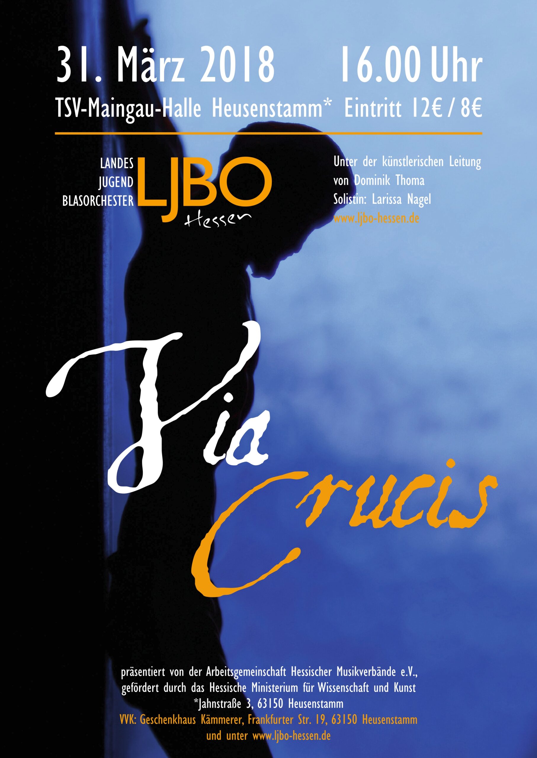 KonzertplakatProgrammMartin Luther (arr. Jacob de Haan)Aus tiefer Not schrei ich zu dirFerrer FerranSinfonie Nr. 2 „La Passió de Crist“Anton Bruckner (arr. Otto Wimmer)Vexilla Regis Hymnus- ProgrammJan van der RoostEt in Terra PaxEdward GregsonTuba ConcertoJohn MackeySheltering SkyJoseph HorovitzBacchus on Blue RidgeKenneth HeskethDanceries