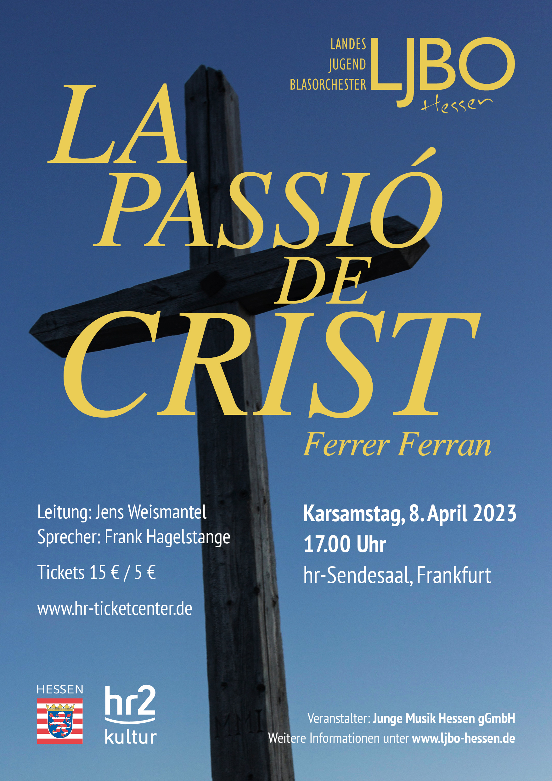 KonzertplakatProgrammMartin Luther, arr. Jacob de HaanAus tiefer NotFerrer FerranLa Passió de CristAnton Bruckner, arr. Otto WimmerVexilla Regis Hymnus- Programm