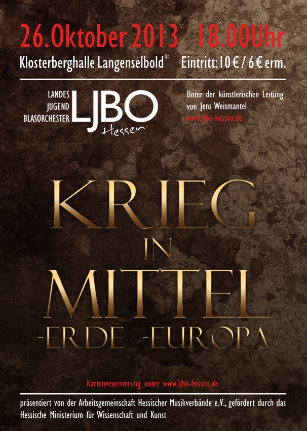 - ProgrammCarl Maria v. Weber, arr. Siegmund Goldhammer/Otto Wagner, Worte: Werner GorgesDie Völkerschlacht bei Leipzig (1813)Johan de MeijSymphony Nr. 1 „The Lord of the Rings“